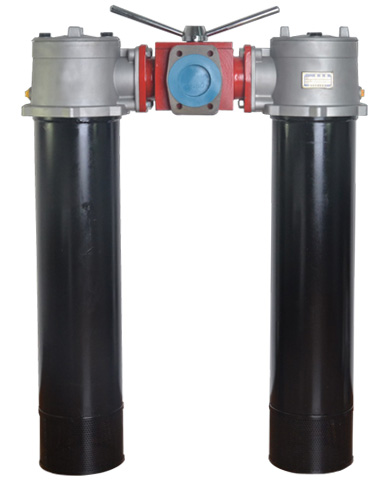 当一只过滤器的滤芯堵塞,致使进出口压差为0.35MPa时,发讯器发讯,这时,转动换向阀,使备用滤油器工作,然后更换已堵塞的滤芯。